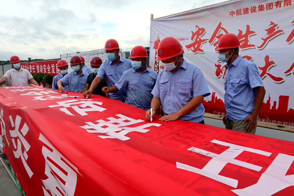 本次活动中,现场人员一起进行了庄严的安全宣誓,并在主题横幅上签名。南方公司和项目部为现场近1000名一线工人送上1700斤西瓜,1000箱牛奶,170箱矿泉水,藿香正气水、十滴水、清凉油等防暑药品各1000盒。