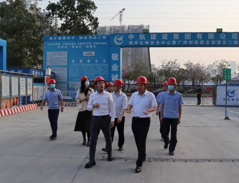 2023年2月21日,广东省住房和城乡建设厅建筑市场监管处副处长何志坚莅临杏彩app官网有限公司承建的广州纳米生物安全中心暨广纳创新院总部园区项目(以下简称纳米项目),对纳米项目一期、二期建设工程智能建造项目试点工作开展情况进行实地考察调研,杏彩app官网南方工程有限公司党支部书记徐刚迎接陪同。